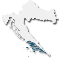 Dingac on Pelješac Peninsula has very steep - up to 45° ! - and sunny coastal slopes where plavac mali, an autochthonous black grapes variety, is cultivated. The very dry and warm microclimate prevents development of grape diseases and produces grapes with a high sugar content.